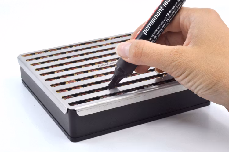 Some people mark brass to keep up with how many times it has been fired and some people mark their brass so they can later identify brass ownership. We designed Brass Stencils that are specially designed for marking ammo. This stencil is fully compatible with our 100 rnd case gauge. Each stencil set comes with 1 colour marker. You can use any permanent marker that only leaves thin layer if color and does not leave any coat of lacquer that may reduce firearm reliability. Brass Stencils are made from stainless steel and are quick to assemble and easy to apply, the solvent resistant plates can be used again and again.