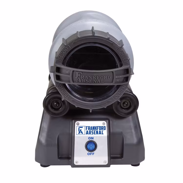 The Frankford Arsenal® Rotary Case Tumbler Lite is the compact version of the Platinum Series Rotary Tumbler. This tumbler can hold up to 300 pieces of .223 bra