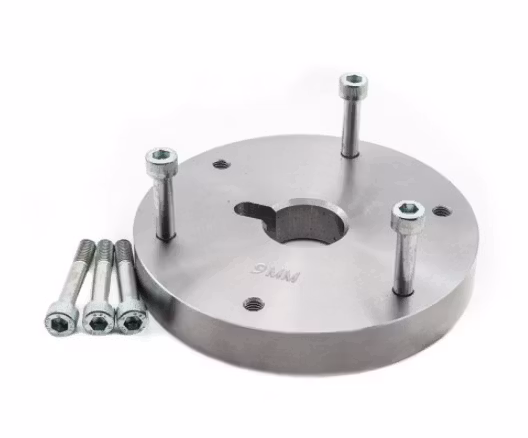 It consists of a precisely CNC machined hardened-steel disc which sets the gap for the sizing of the brass in each caliber, and includes the activation bolts (6 of them) which can be added as needed to set the speed in which the cases feed into the RollSizer.