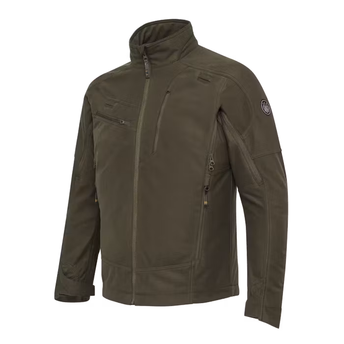 Jackan är tillverkad med en andningsbar Beretta Wind Resistant (BWR) membran, vilket ger utmärkt skydd mot vind och vatten. Det noiseless polyester gauze-yttermaterialet är behandlat med Durable Water Repellent (DWR) för extra väderskydd. Ventilationsdragkedjor under armarna bidrar till optimal temperaturreglering under aktivitet.