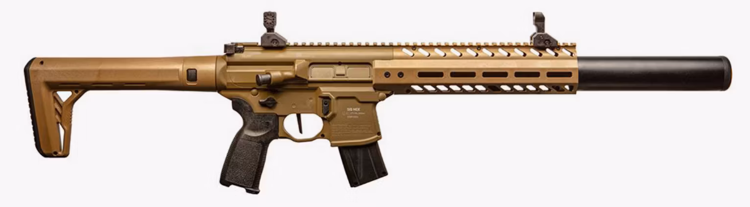 Modellen är en halvautomatisk kolsyreversion på SIG´s nya MCX-plattform. En kompetent automatkarbin med AR15/M-16 inspirerad design.