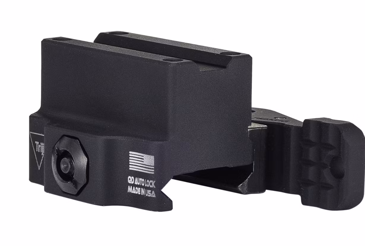 The Trijicon MRO® Levered Quick Release Full Co-Witness Mount features a Mil-Spec drop test rated, aircraft grade aluminum design, with an intuitive lever-locking design.