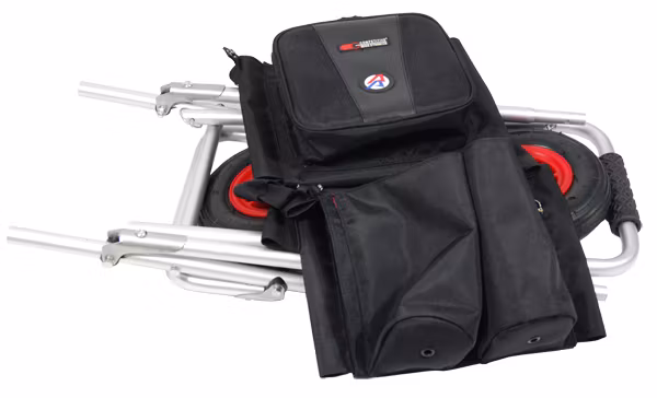 Made of rugged, top quality aluminum tubes and steel joints and hinges, this range cart can securely carry over 50 kg of gear. And with its wide inflatable all-terrain tires, it can carry that weight anywhere you need to go!