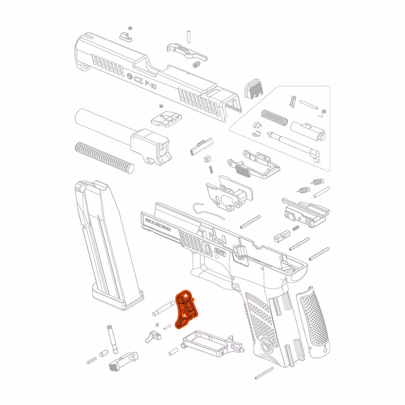 Original avtryckare i polymer för CZ:s P-10-serie. Perfekt som ersättningsdel om originalavtryckaren är sliten eller skadad. Tillverkad av CZ med hög precision och kvalitet.
