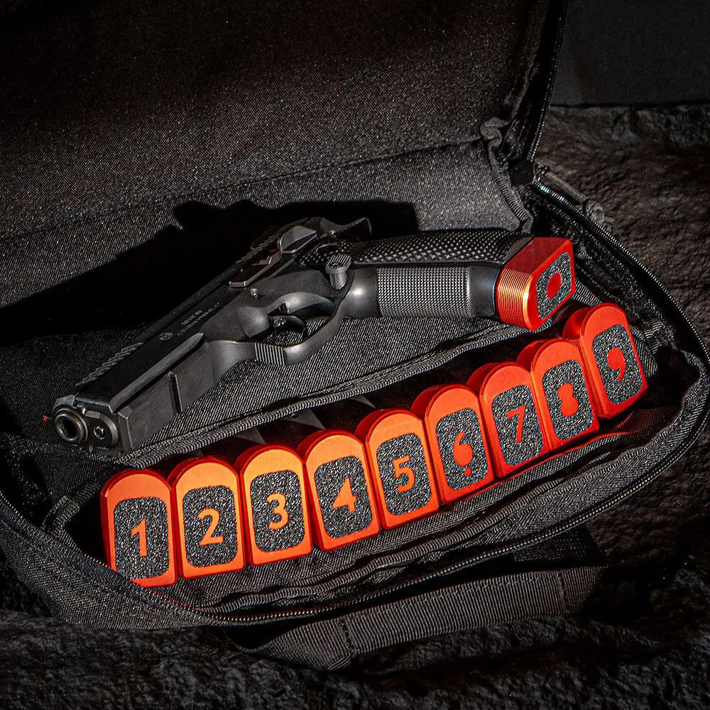 ✅ Numrerade grip tape-bitar (0–9) för enkel magasinidentifiering