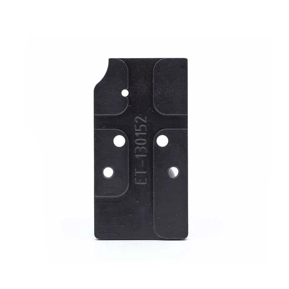 Plattan är tillverkad i höghållfast stål med svart ytfinish och väger endast cirka 25 gram. Den inkluderar urfräsning för enkel demontering av utdragningsstiftet, vilket gör vapenvård och underhåll smidigt även med siktet monterat.