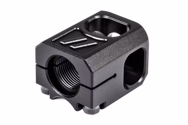 The ZEV V2 PRO Compensator was designed to enhance the performance of your Glock pistol by reducing muzzle rise and felt recoil. The V2 improves upon the original PRO Compensator with contoured porting, an enlarged guide rod channel, and a new mounting system which permits secure installation and removal without the need for thread locking compound.  The ZEV V2 PRO Compensator was developed and optimized for use on the G19 but will fit and function on all 9mm Glock models with a corresponding threaded barrel. Due to its compact size, when installed on a G19 with ZEV threaded barrel, it has the same overall length as a G34 slide and is compatible with most G34 holsters. The V2 PRO Compensator will generally function with standard power 9mm ammunition and factory recoil assemblies but best performance will be obtained through matching the recoil spring weight to your particular pistol and ammunition.