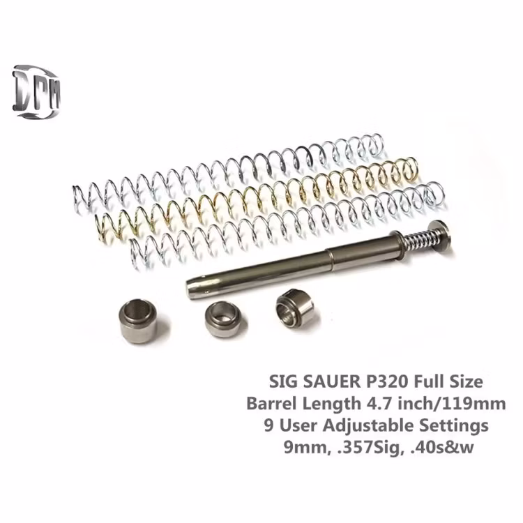 Three or more springs of different sizes for specific compression, housed in a metal tube. The mission of the system is the control of the backward motion of the slide at the moment of the bullet's firing. The initial pressure, that the total of the system exhibits, is almost the same with the standards of the factorial springs. But at the final phase of the system's coiling the difference of pressure that is exerted on the slide is in the order of 80% - 100% more. Consequently, the slide never rams against the frame and jams are eliminated.