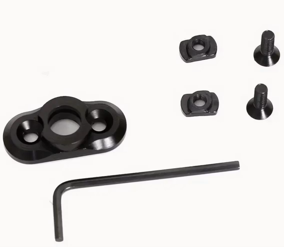 Fästpunkt för vapenremmar med snabbfästeDenna fästpunkt är kompatibel med M-LOK handguards. Den låga profilen och de avsmalnande hörnen minimerar risken för att