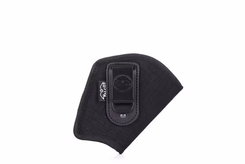 This holster is designed for small of the back carry. It is an IWB holster attached to the belt by a belt clip.