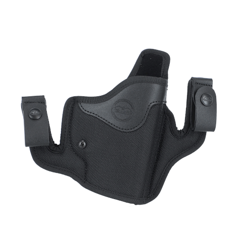 A hybrid holster that can be used as both, IWB and OWB. made of premium quality nylon in combination with black leather. The main body is made of sturdy, shape-