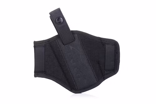 This holster is made of laminated material with a durable foam. It was designed for comfortable daily carry. The entire barrel is covered. It features two belt loops on each side which allows a ride close to the body for comfort and concealment. The adjustable and removable thumb break is reinforced and provides added security.
