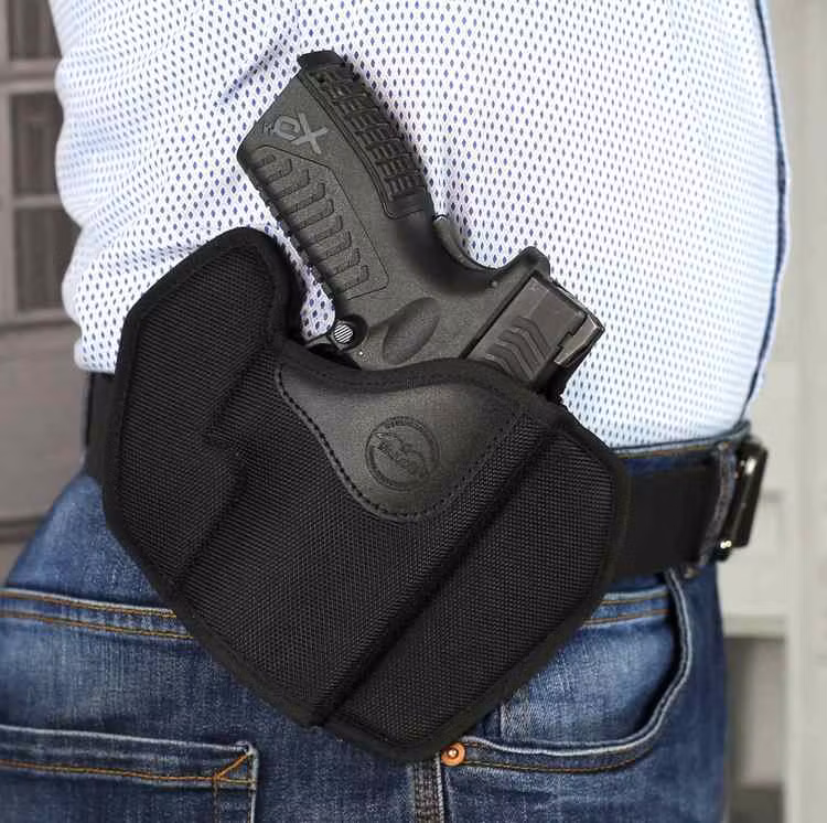 Pancake style belt OWB nylon holster with four belt openings allowing you to change the holster cant. Suitable for more on the back or cross draw carry. The mai
