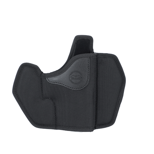 Pancake style belt OWB nylon holster with four belt openings allowing you to change the holster cant. Suitable for more on the back or cross draw carry. The main body is made of sturdy, shape-holding nylon where we reinforced the top of the holster with black leather. The holster design ensures the holster would remain open, enabling easier and quick reholstering. Not to mention the smooth gun draw. The holster also features integrated plastic sights rail for top sights protection and an optional sweat guard that separates the gun from the body.