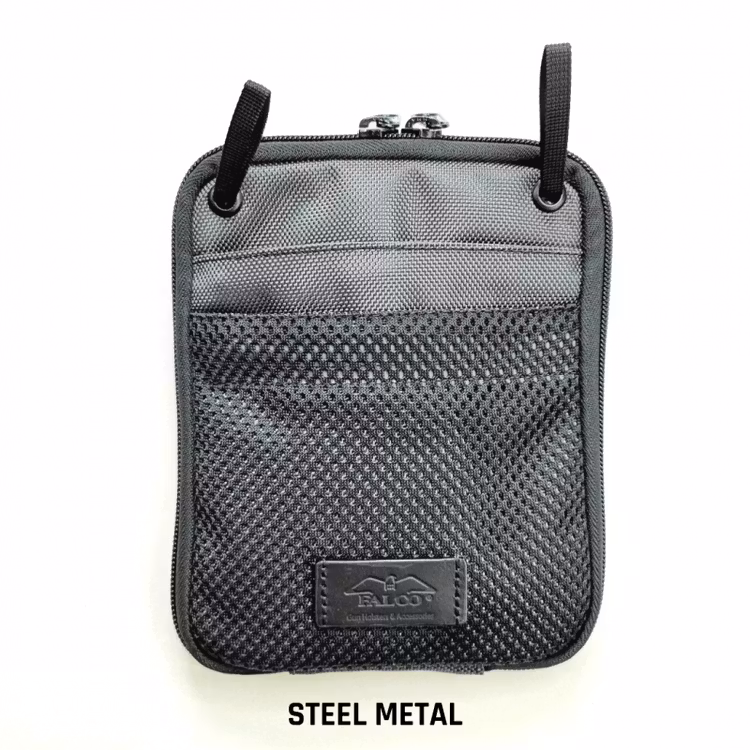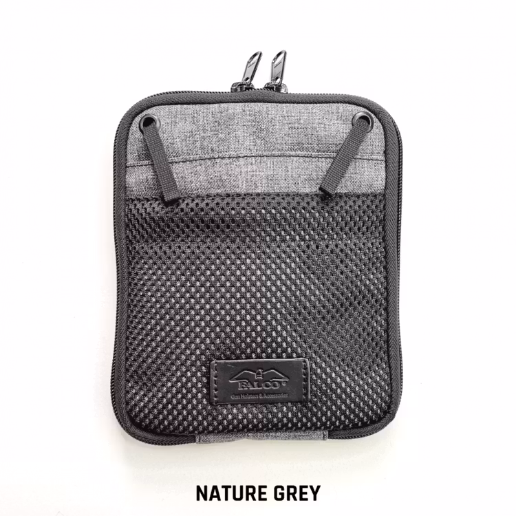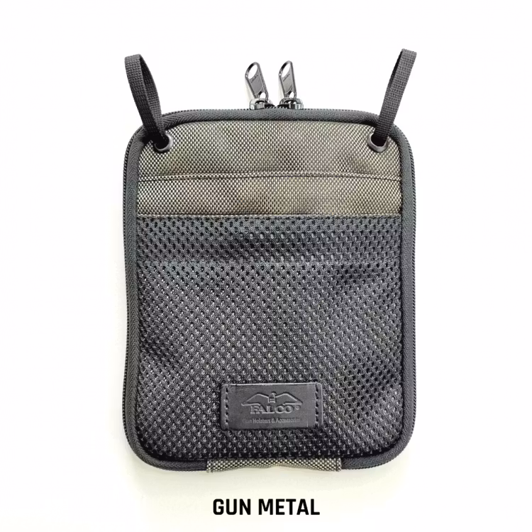 Concealed carry belt pouch with a slim compact design. Reinforced back section for safe and comfortable gun carry. Providing for an easy gun draw with pull out strings. The bag offers 3 zipper pockets. The front see-through mesh pocket, the middle pocket, and the back one designed for gun carry. The pouch is attached to a belt by adjustable belt loops. Made of durable polyester fabric, available in a variety of colors