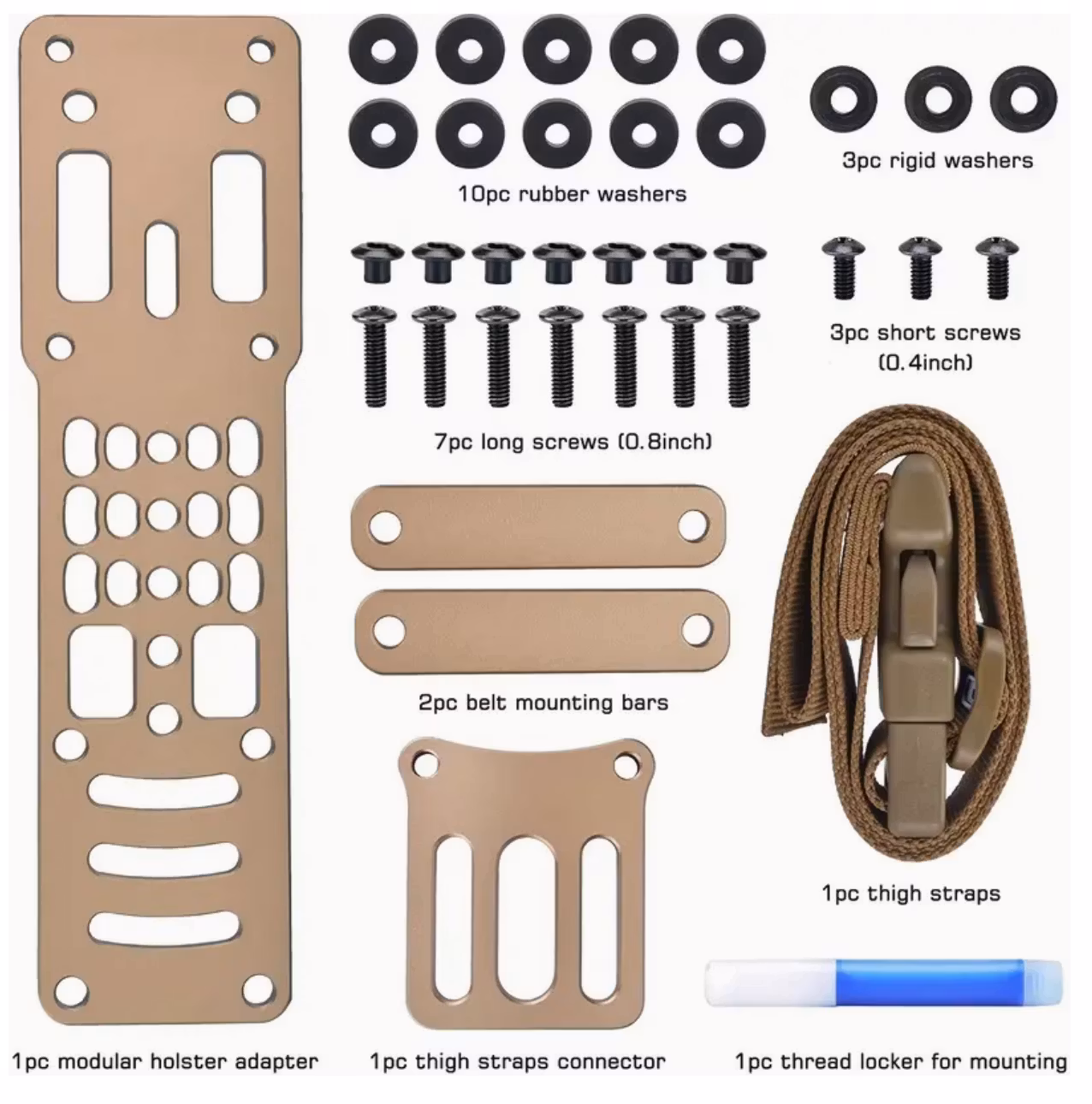 Modular Holster Adapter är en avancerad, robust och mångsidig lösning för att säkert fästa ditt pistolhölster. Tillverkad av högkvalitativ aluminiumlegering, er