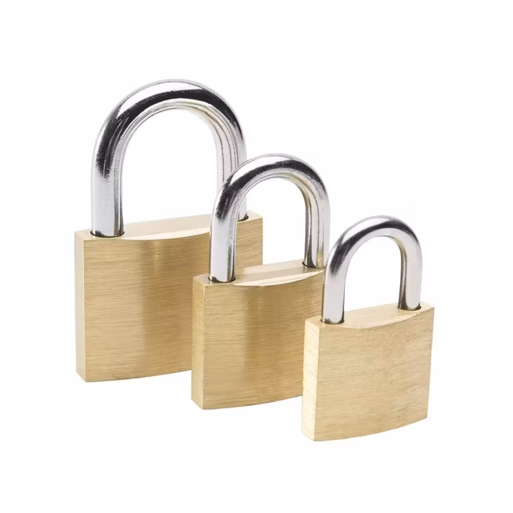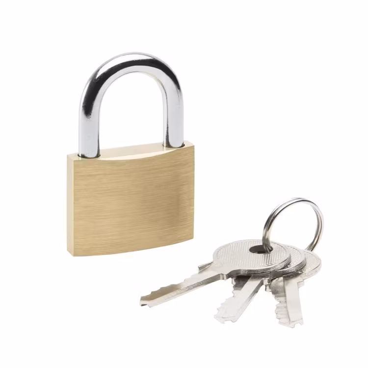 Hänglås med låshus i mässing och bygel i härdat stål. Tre nycklar medföljer. Bygeltjocklek: 5,5 mm (30 mm), 6 mm (40 mm) och 8 mm (50 mm).