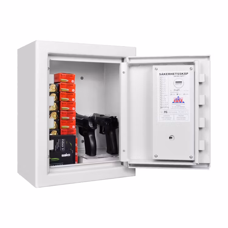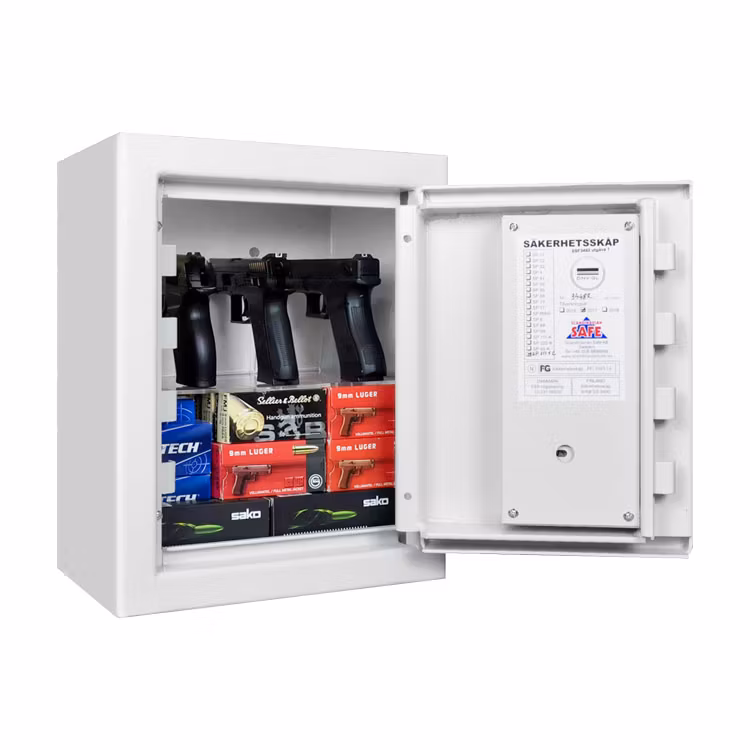 Kompletterande tillbehör: LED-belysning, magnetiska nyckelkrokar, pistolhållare, Gold Edition, extra nycklar(vid vad av nyckellås), betongsockel och trä-eller betongbultar.