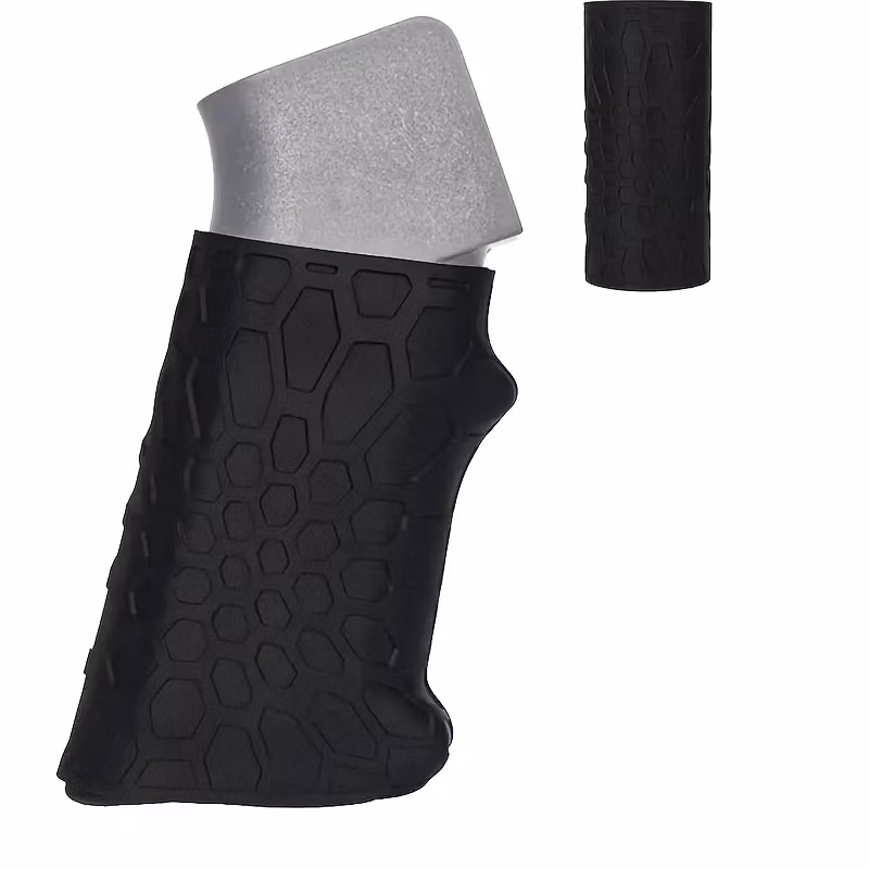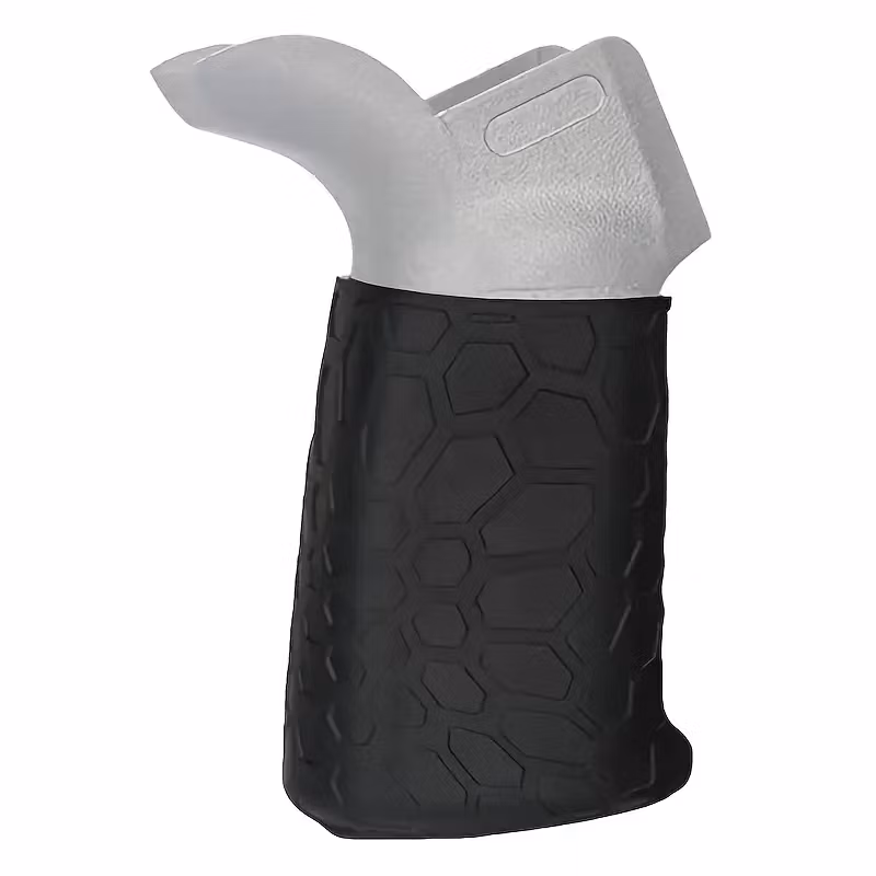 Ergonomiskt taktiskt gummigrepp i fullstorlek med hexagonalt halkfritt mönster. Tillverkat i slitstarkt svart gummi för att ge maximal kontroll och precision vid jakt och taktiskt skytte. Passar de flesta gevärs- och hagelhandtag tack vare sin universella passform.