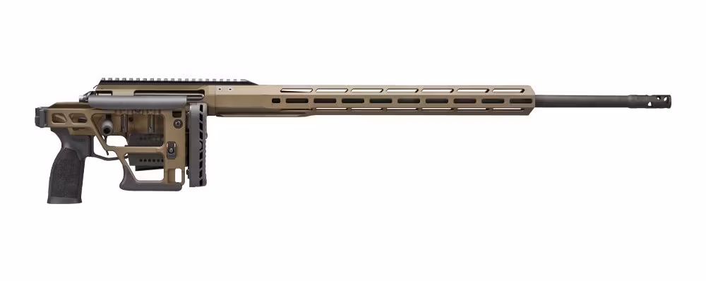 Det erbjuds i tre kalibrar: .308 Win, 6.5 Creedmoor och SIGs egen innovativa .277 Fury. Den nya .277 Fury-kalibern använder en hybridhylsa med stålbakstycke som möjliggör extremt högt tryck (SAAMI max 80 000 psi) och imponerande hastigheter även i kortare pipor – exempelvis +900 m/s med 140 gr kula ur en 16” pipa.