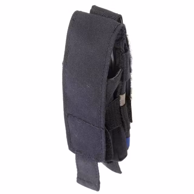 - Fästs enkelt på utrustningsvästar, bälten eller benplattformar utan att behöva ta bort andra fickor.