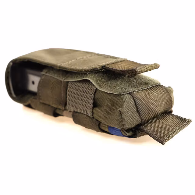 - Fästs enkelt på utrustningsvästar, bälten eller benplattformar utan att behöva ta bort andra fickor.