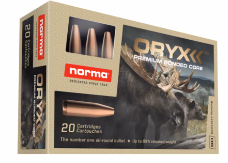 Norma Oryx Oryx-kulor är kända för sin goda precision, massiva expansion och höga restvikt. Denna bonded design passar allroundjägaren som vill förenkla valet av patron för jakt. Tack vare dess utmärkta prestanda har Oryx snabbt blivit en av de mest populära kulorna från Norma.