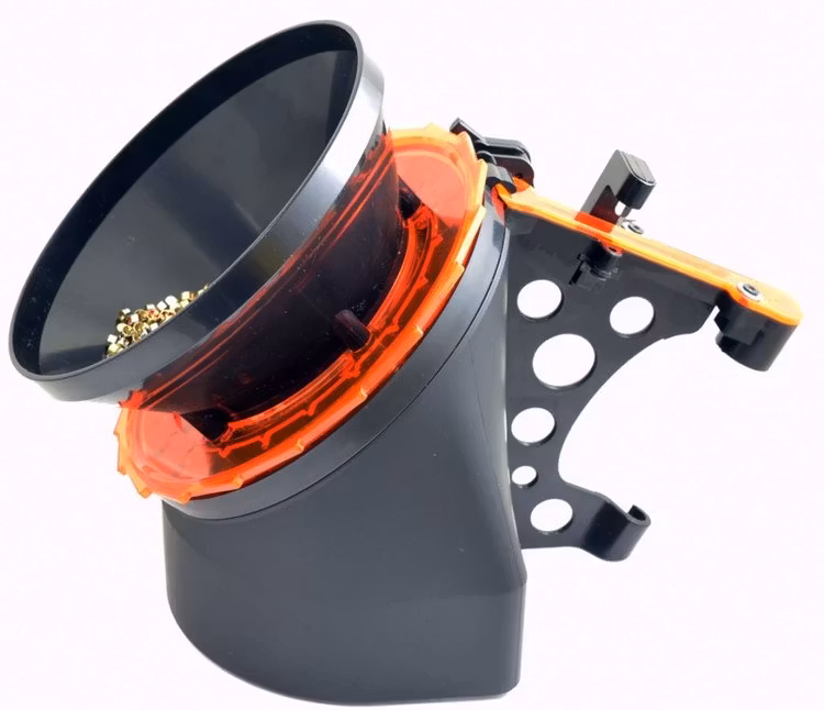 The PRIMER-PRO by Double-Alpha is an innovative patent-pending design which departs from the traditional vibratory bowl solution used by all other automated primer tube machines. The PRIMER-PRO uses a collator type solution where the primers are allowed to exit the bowl through 20 precisely formed channels, ONLY if they are orientated in the correct direction (Anvil side up). If they are Anvil down, they will not pass through the channel, and rather slide back into the bowl as their channel reaches the top of the rotation, to enter again later, correctly oriented.