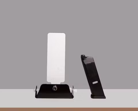 Skjuta detta mål på 10 feet (3 meter) kommer att känns som att skjuta fullstorleken på 4 "X 11" plåten på 6,7 yard (6,1 meter). (G17 magasinet är för storleks jämförelse). Detta är en uppsättning som består av en bas och en fallande plåt. Basen kommer också att fungera på de övriga fallande plåtarna som t.ex. den 12cm runda plåten, och classic poppern)