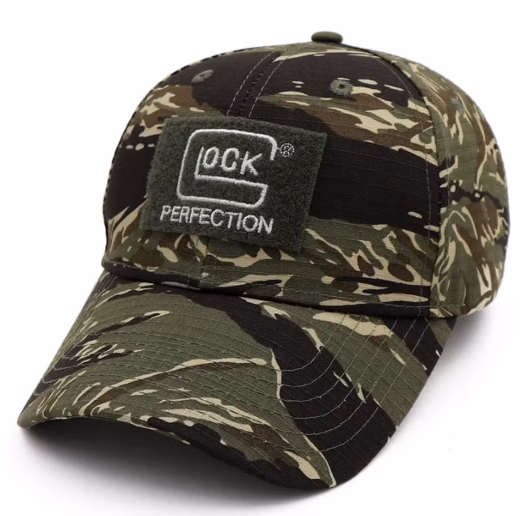 Glock Perfection Keps i Tiger Camo mönster är en fashionabel och praktisk huvudbonad för entusiaster av Glock-varumärket och alla som uppskattar en militärinspi
