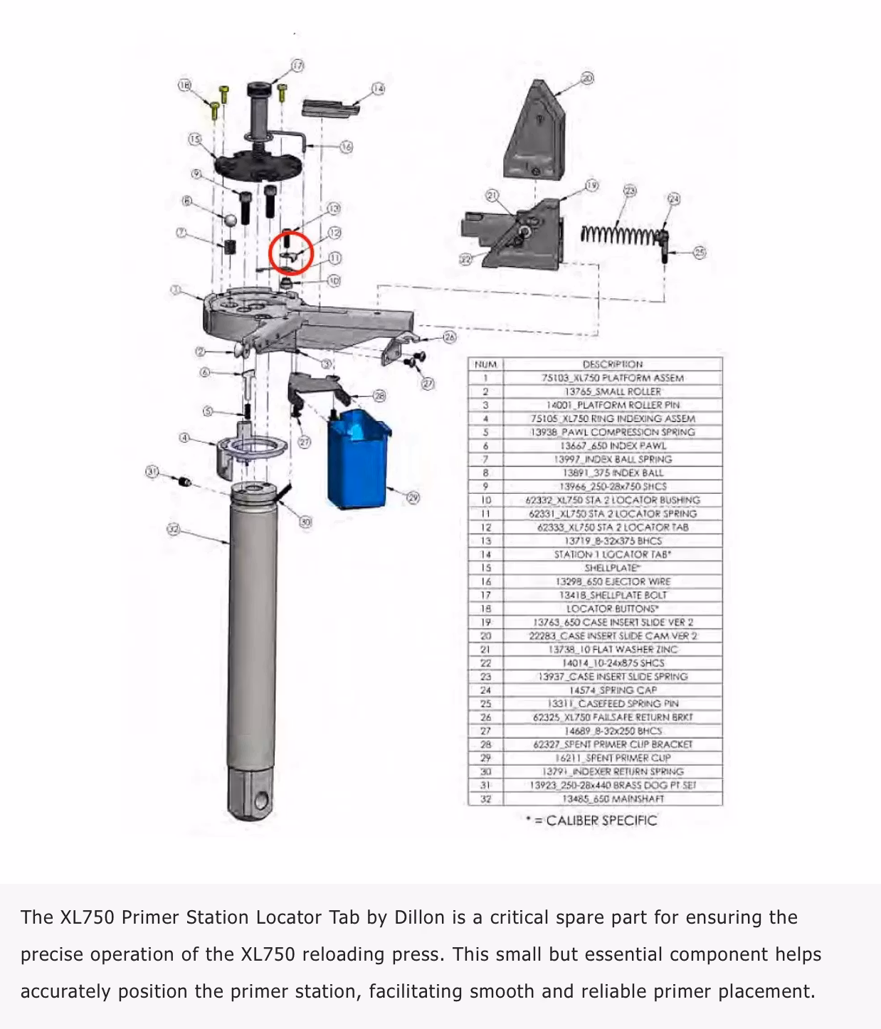 Dillon Primer Station Locator Tab for Dillon XL750The Dillon Primer Station Locator Tab is an essential component for the Dillon XL750 reloading press. This sma