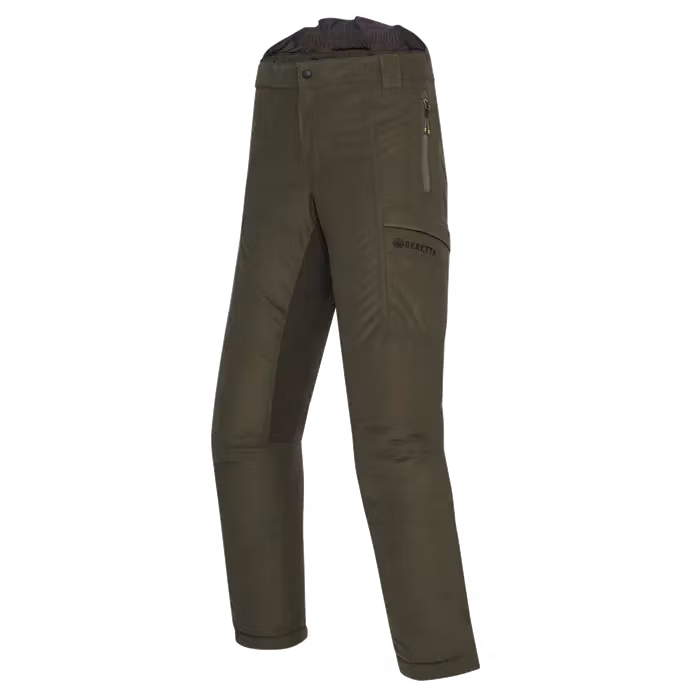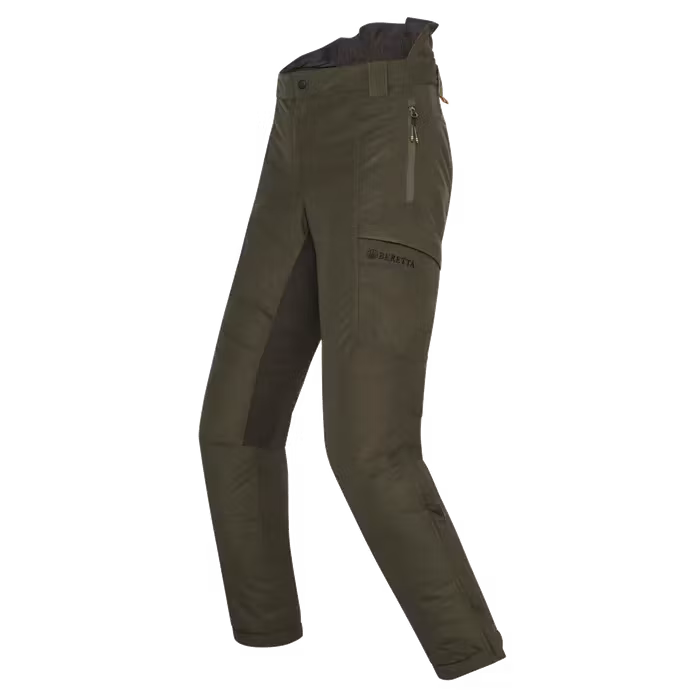 Den varma 120 g syntetiska vadderingen säkerställer optimal isolering, medan yttermaterialet, behandlat med Durable Water Repellent (DWR), är gjort av ljudlös polyester-gaze. Stretchpaneler på insidan av benen garanterar maximal rörelsefrihet, vilket gör dem idealiska för aktiva jaktscenarier.