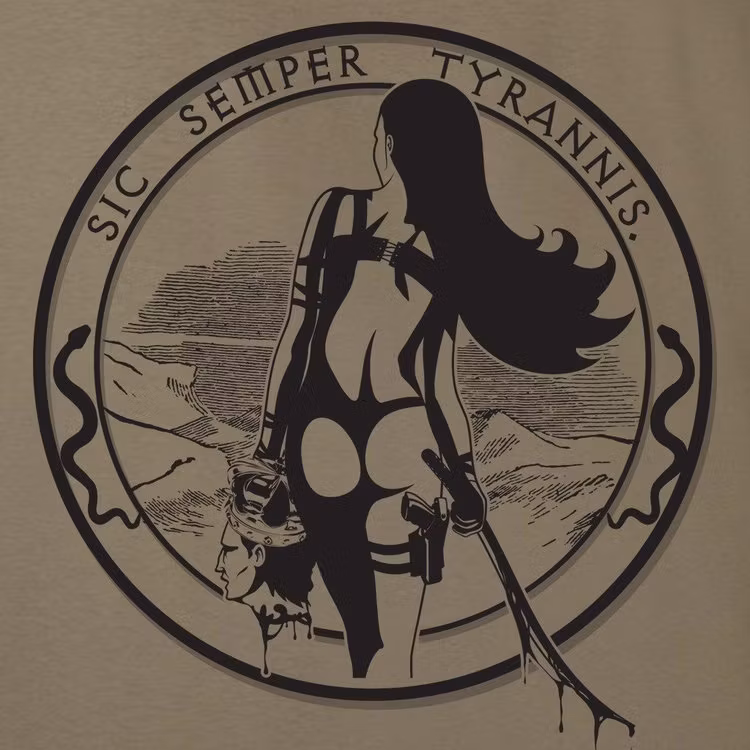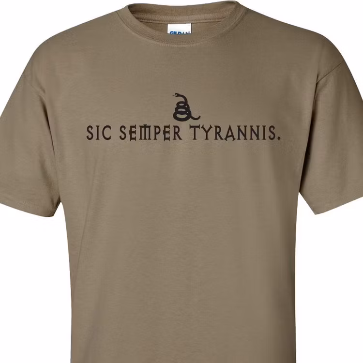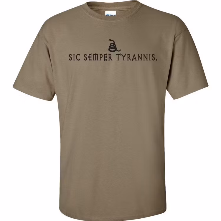 Front and Back print shirt. Silk-screened by Small US Biz. Modern Logo property of Gadsden and CulpeperSic semper tyrannis is a Latin phrase meaning "thus alway