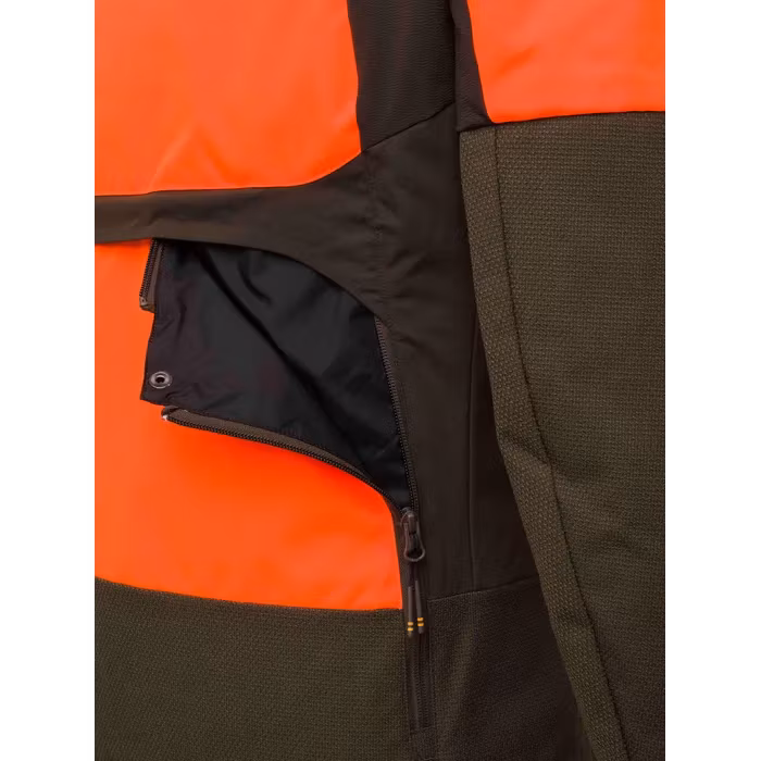 Thorn Resistant EVO Jacket är en robust och funktionell jaktjacka för män, designad för aktiv jakt i tuff terräng med taggar, buskar och tät vegetation. Jackan kombinerar motståndskraft och andningsförmåga med en lätt design och hög synlighet i orange enligt EN20471.