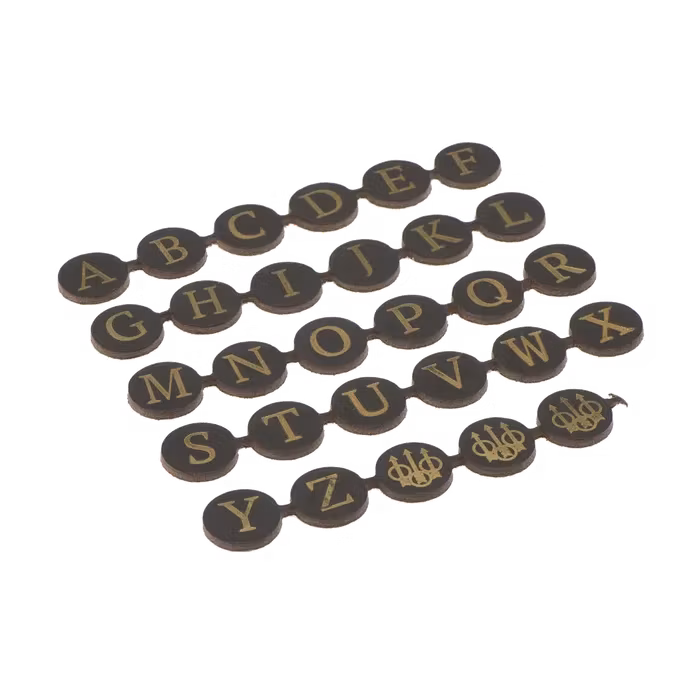 Personlig stil möter klassiskt hantverk med detta läderbokstavs-kit från Berettas Hoplon-serie – exklusivt designad för jägare med smak för det sofistikerade. Använd bokstäverna för att märka och anpassa vapenfodral, väskor eller accessoarer med din initial, namn eller symbol.