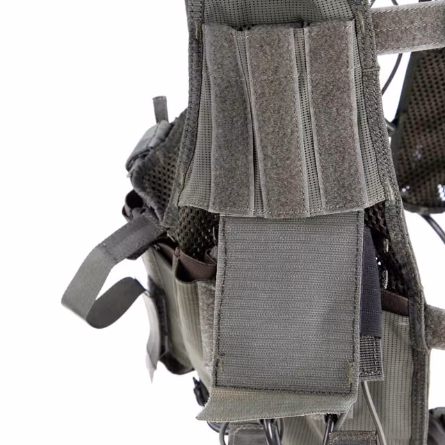 Covert Equipment Vest -12 är en diskret utrustningsväst som låter dig bära all nödvändig utrustning bekvämt och dolt under en jacka. Den är designad för att bäras både dolt och öppet och är populär för taktisk användning tack vare sin tätsittande passform. Med ett justerbart elastiskt snöre för ökad komfort och kanaler för radioledningar, erbjuder västen praktiska lösningar för professionella användare. Västen har flera elastiska fack, inklusive inre och yttre för SMG eller 5,56-magasin, batonger, ficklampor och radio. Det finns även fickor för pistolförvaring på både vänster och höger sida samt en byxbältesögla i botten.