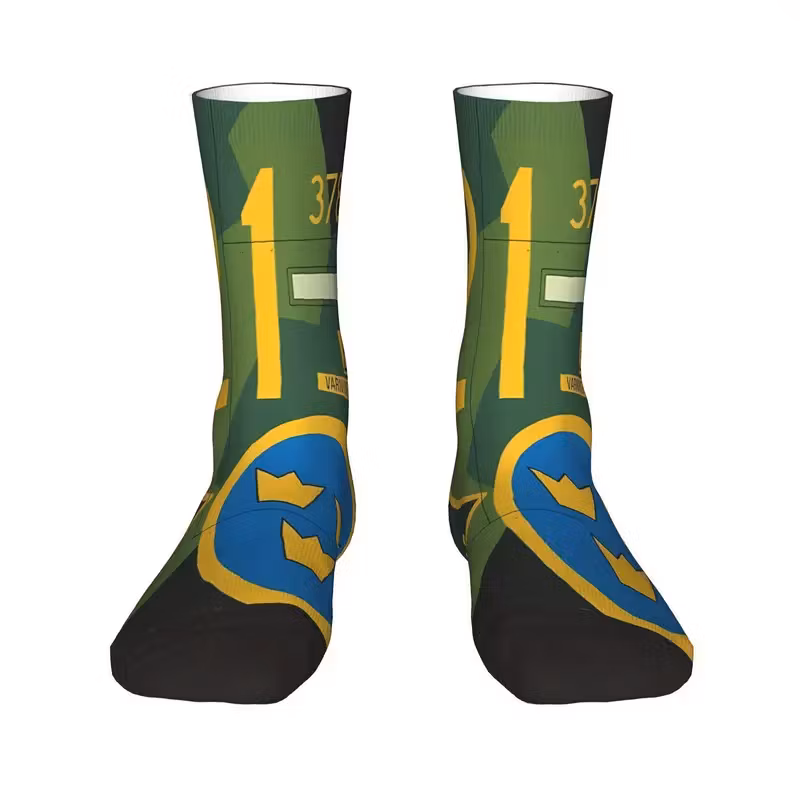 Svenska Viggen Strumpor i klassiskt militärgrönt utförande kombinerar komfort, slitstyrka och stil – inspirerade av det ikoniska svenska stridsflygplanet Saab 3