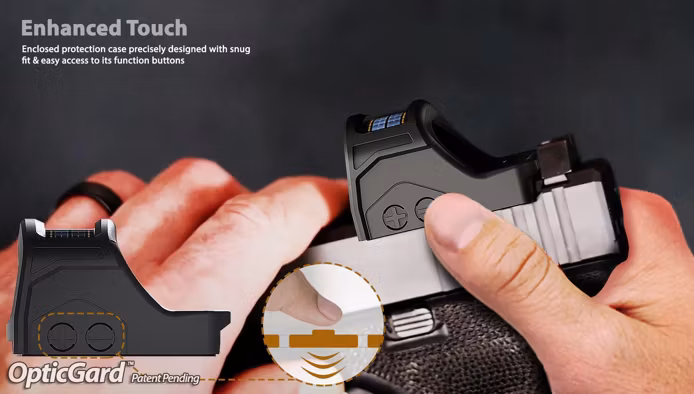 The OpticGard Scope cover for the Holosun® 507C-X2/407C-X2 offers protection against stray bullet casings and scratches. The intelligent cut allows th