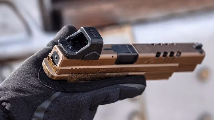 The OpticGard Scope cover for the Holosun® 507K-X2/407K-X2 offers protection against stray bullet casings and scratches. The intelligent cut allows th