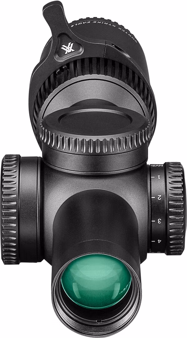 Vortex Strike Eagle 1-8x24 FFP med belyst EBR-8 (MOA)-riktmedel, throw lever och RevStop Zero. Perfekt för snabba skott och långa avstånd – idealiskt för jakt,