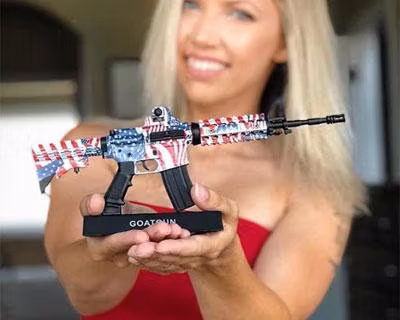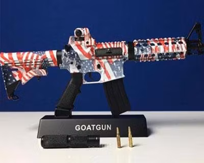 MINIATURE USA AR15 TOY MODELNICKNAMED 'M4R1CA | 1:3 SCALE DIE CAST MODELDubbed the American Hero, it doesn't get more American then a AR wrapped in the USA Flag