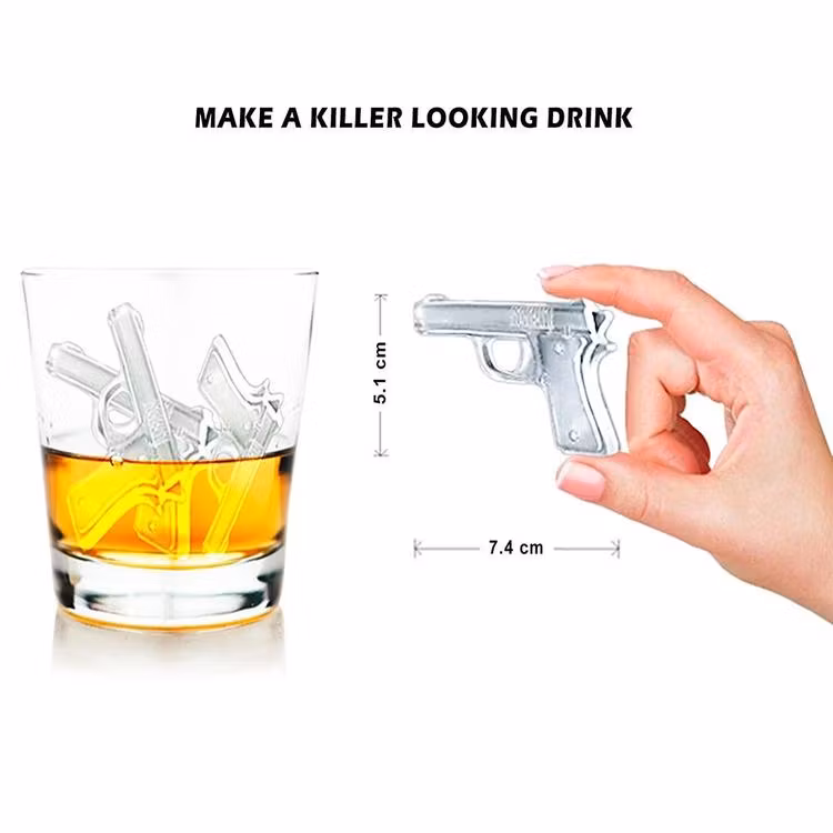 Tired of plain square and boring ice cubes for the drink? Put on the tuxedo and put the James Bond stamp on the whole party with its ice shapes. One mold produces 6 pistol pieces