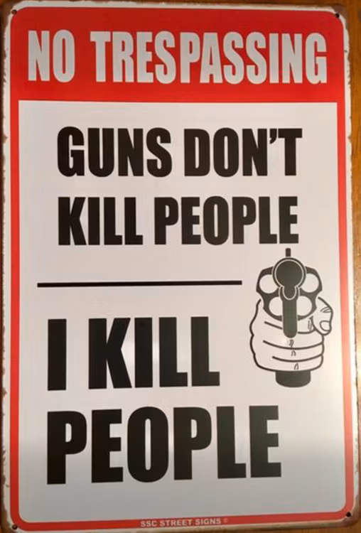 No Trespassing - Guns dont kill people - I kill people - Metal tin sign