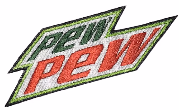 - Design: Patchen presenterar texten "Pew Pew" i en iögonfallande stil, vilket är en populär onomatopoetisk frase som efterliknar ljudet av en skjuten pistol.
