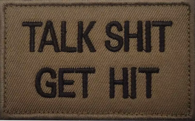 "Talk Shit Get Hit" - Patch är en uttrycksfull och kraftfull märke som kombinerar en stark attityd med en skämtsam ton. Denna patch är avsedd för de som uppskat