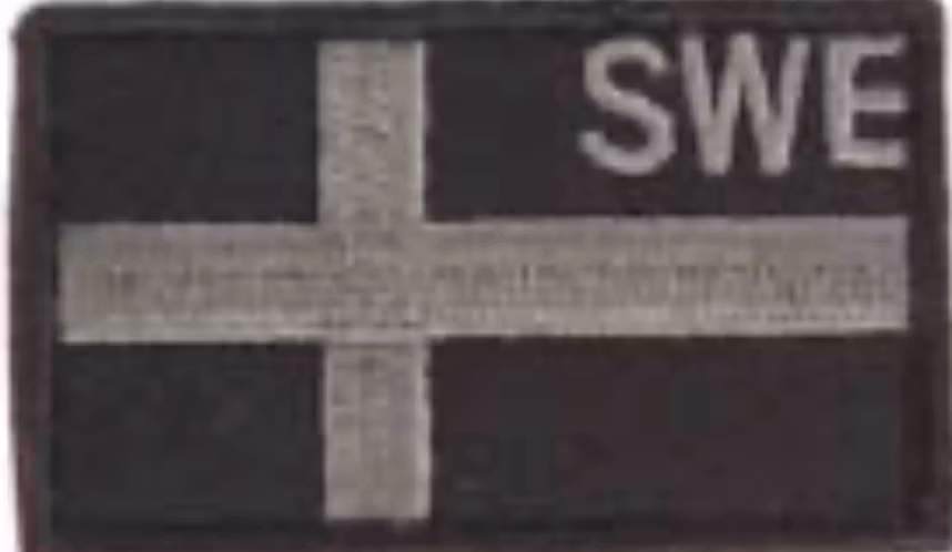 SWE PATCH, SMALL -12 är en svart och grå patch med den svenska flaggan och texten "SWE". Den mäter 60 x 37 mm och har kardborre på baksidan för enkel fastsättni
