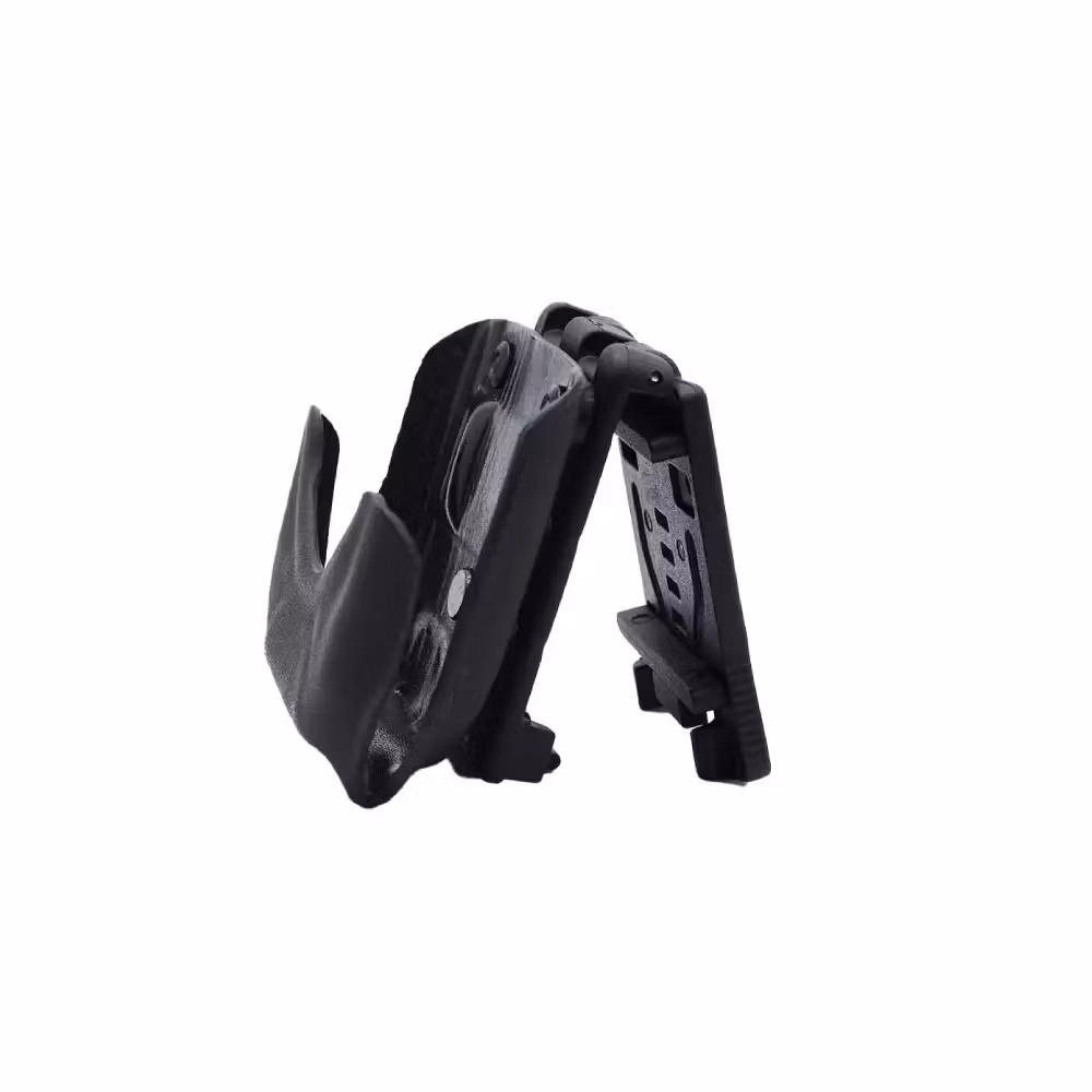Beskrivning: Practical Shooting Bluetooth Shot Timer Holder är en specialdesignad hållare för din shot timer. Denna hållare är utformad för att fästa timern på ditt bälte och samtidigt fungera som ett skyddande hölje, vilket garanterar både enkel åtkomst och skydd under praktiska skytteaktiviteter.