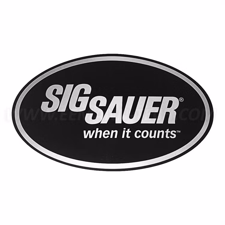 SigSauer "When It Counts" Sticker. Shape: OvalSize: 140x85mmBackground color: Black