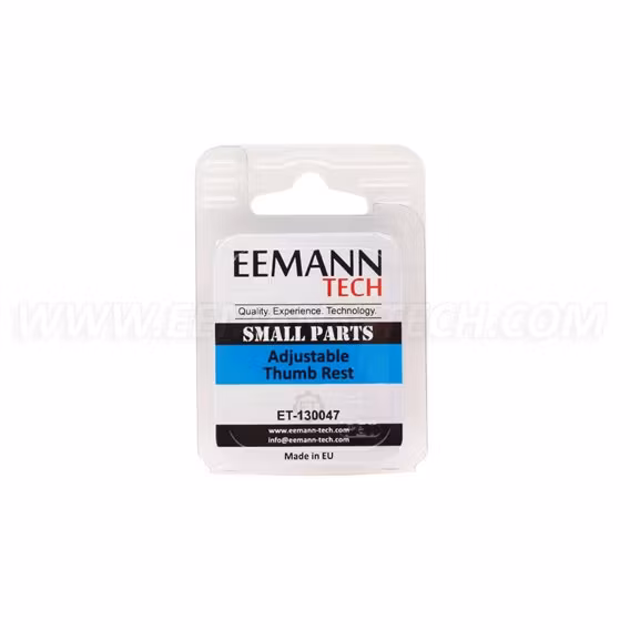• Eemann Tech Adjustable Thumb Rest for any flat steel frame• For right handed shooters, need to install on left side of pistol• Thumb angle - 35' degrees• Adju