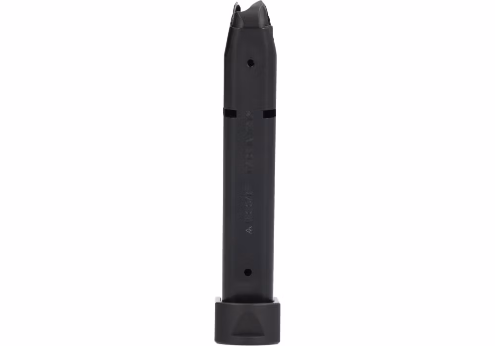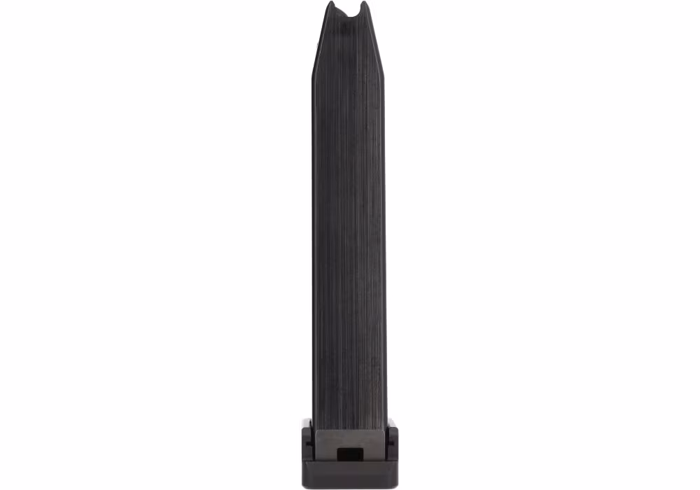 20-round steel magazine for the SIG SAUER P226-XFIVE pistols chambered in 9mm. Featuring a durable aluminum basepad with a front serration for added grip when handling.